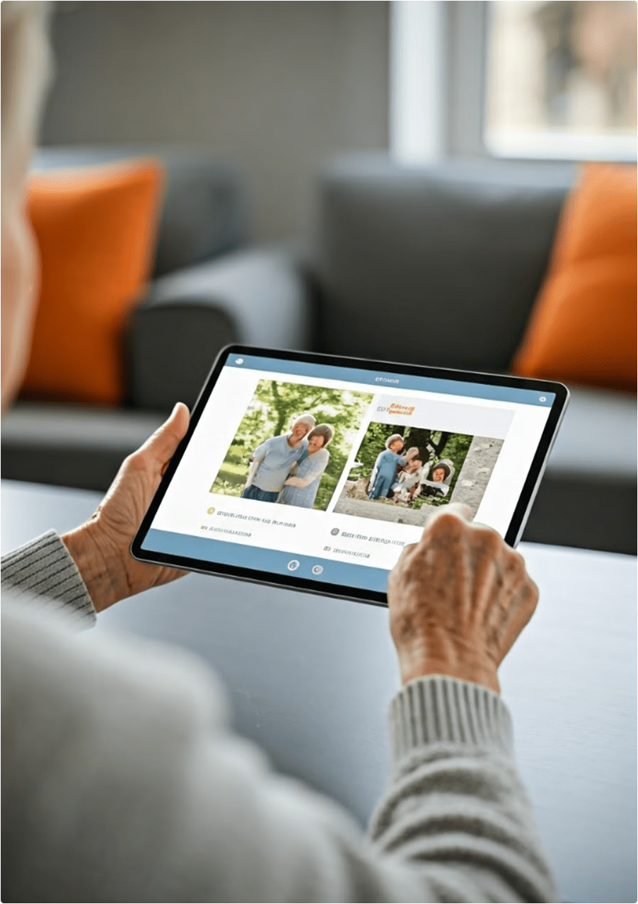 La plateforme Conelio permet aux aidants de configurer des messages personnalisés, des photos, ou des rappels directement sur une tablette dédiée. La personne aidée voit ces contenus de manière intuitive sur son écran, favorisant l’interaction familiale et le bien-être quotidien.